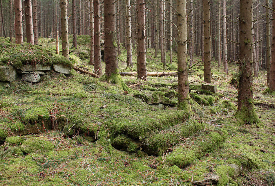 Natursten i olika former. Här finns jordkällare och torplämningar, minnen efter stenhuggarepoken m.m.